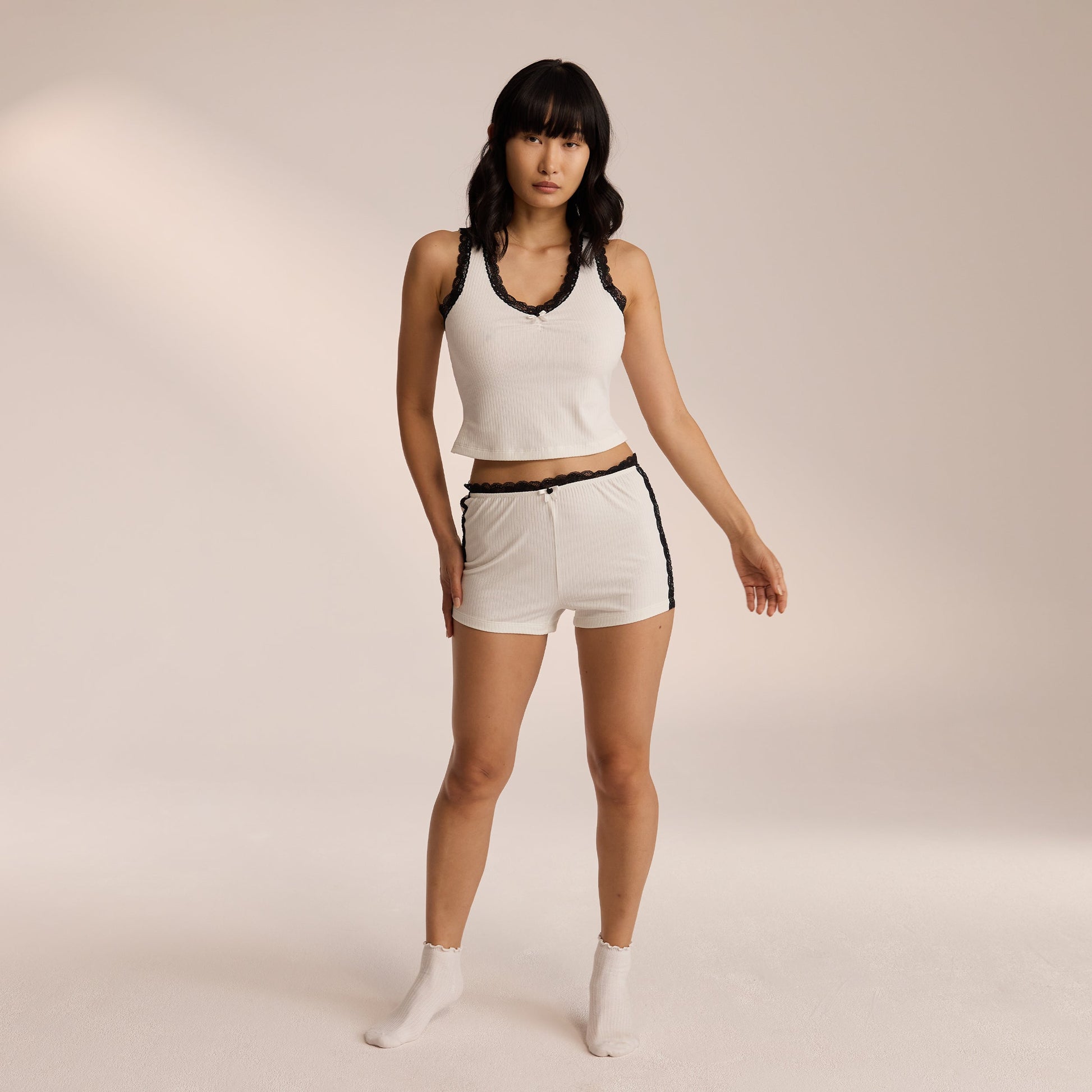 - Pajama shorts in a ribbed stretch fabric